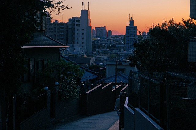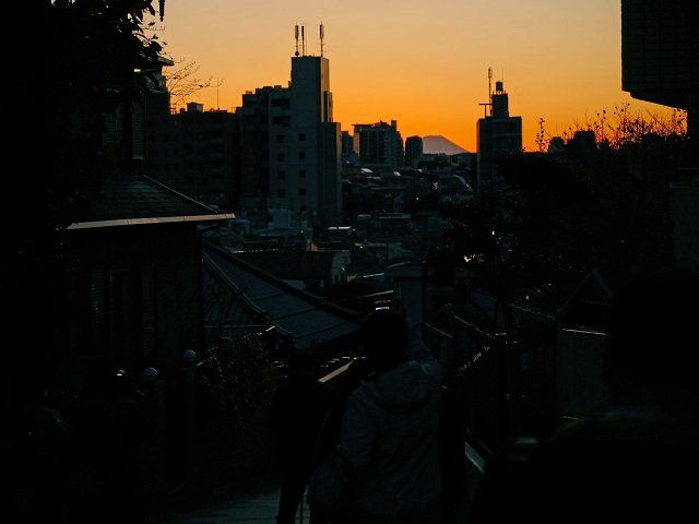 夕刻もきれいに富士山のシルエットが見え、たくさんの